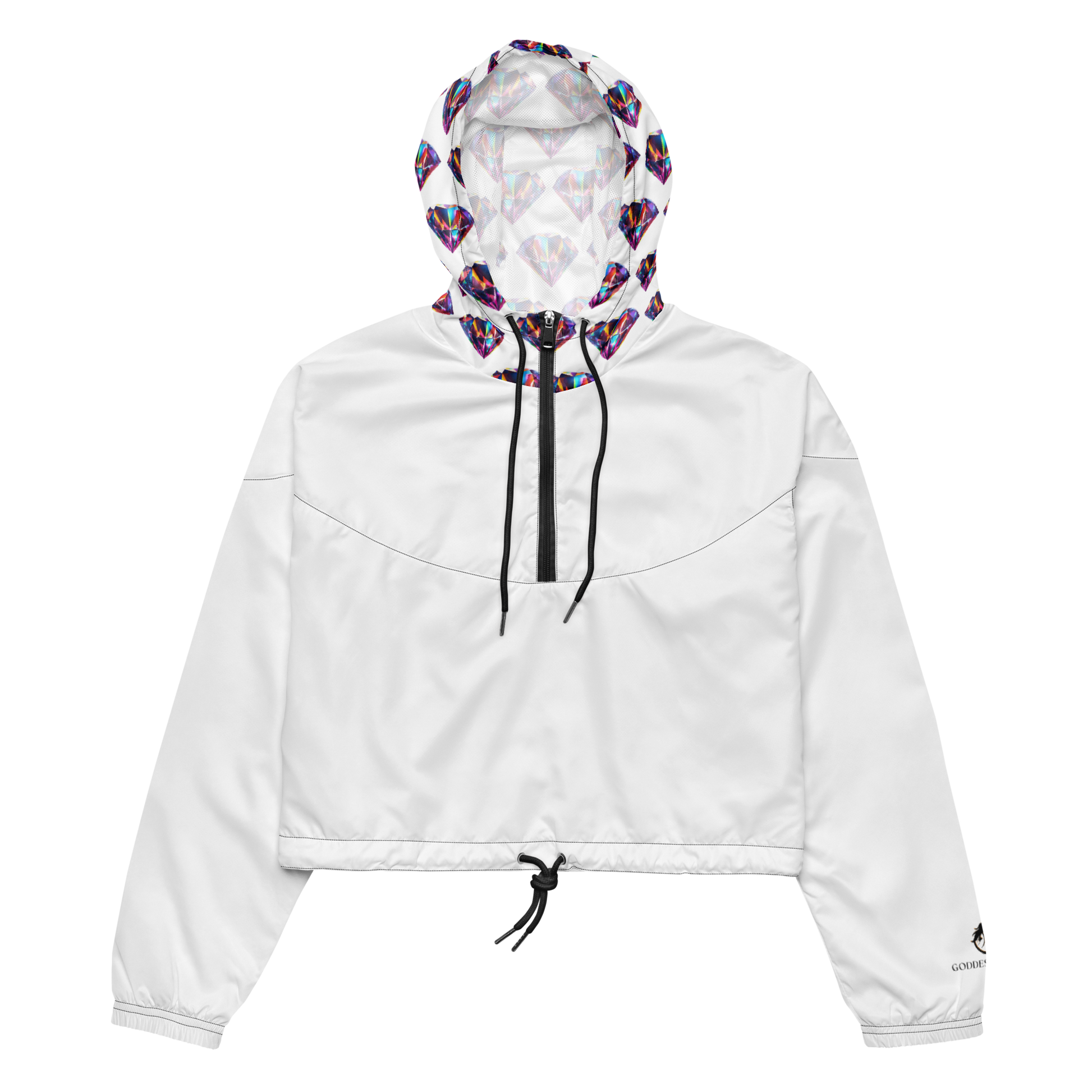 Hike in style without the rain getting in the way—this cropped windbreaker is lightweight, waterproof, and suitable for every kind of adventure. Features include side-slit pockets, breathable mesh lining, and adjustable drawcords on the hood and waist to support all your stylish outdoor looks.
